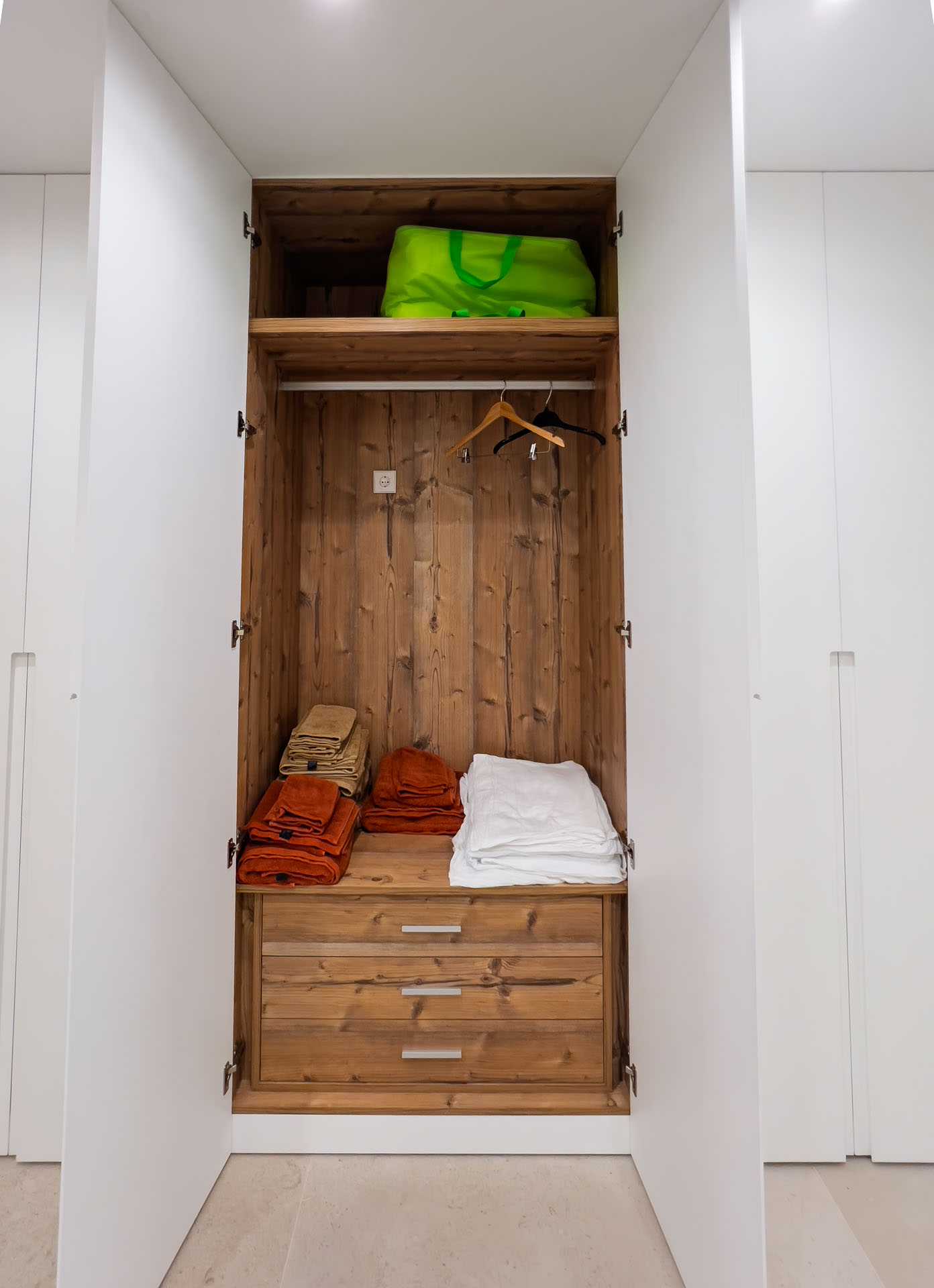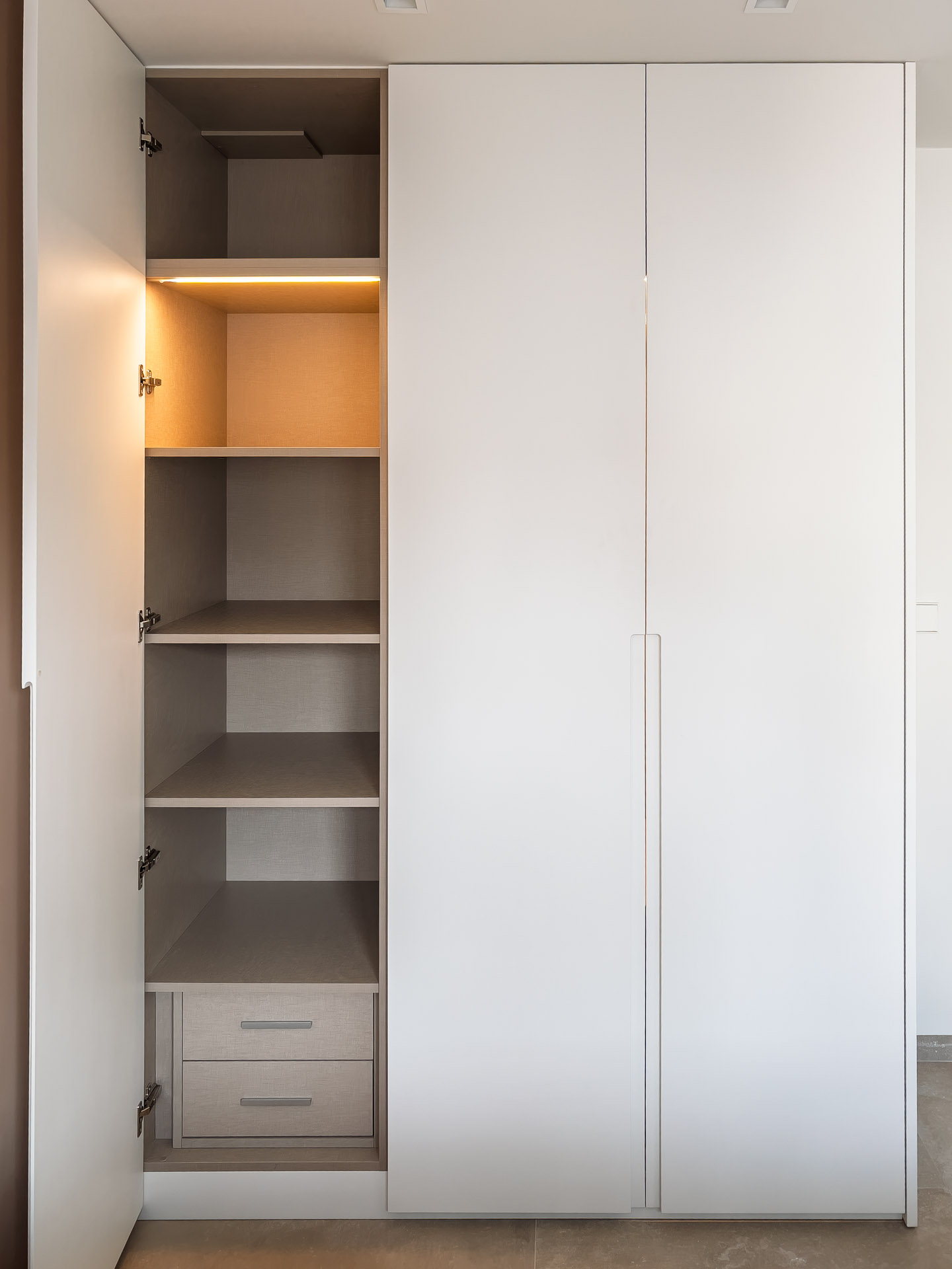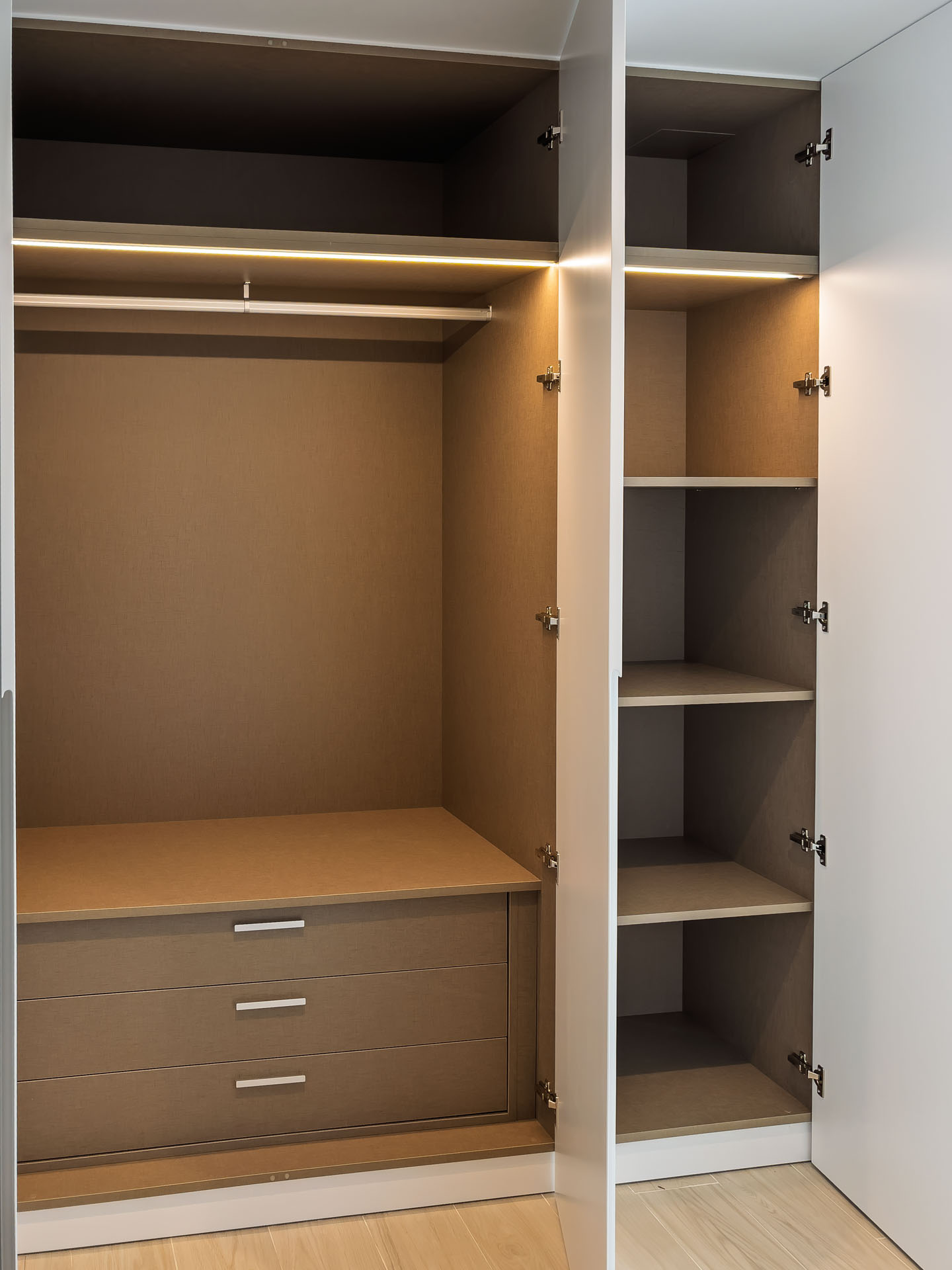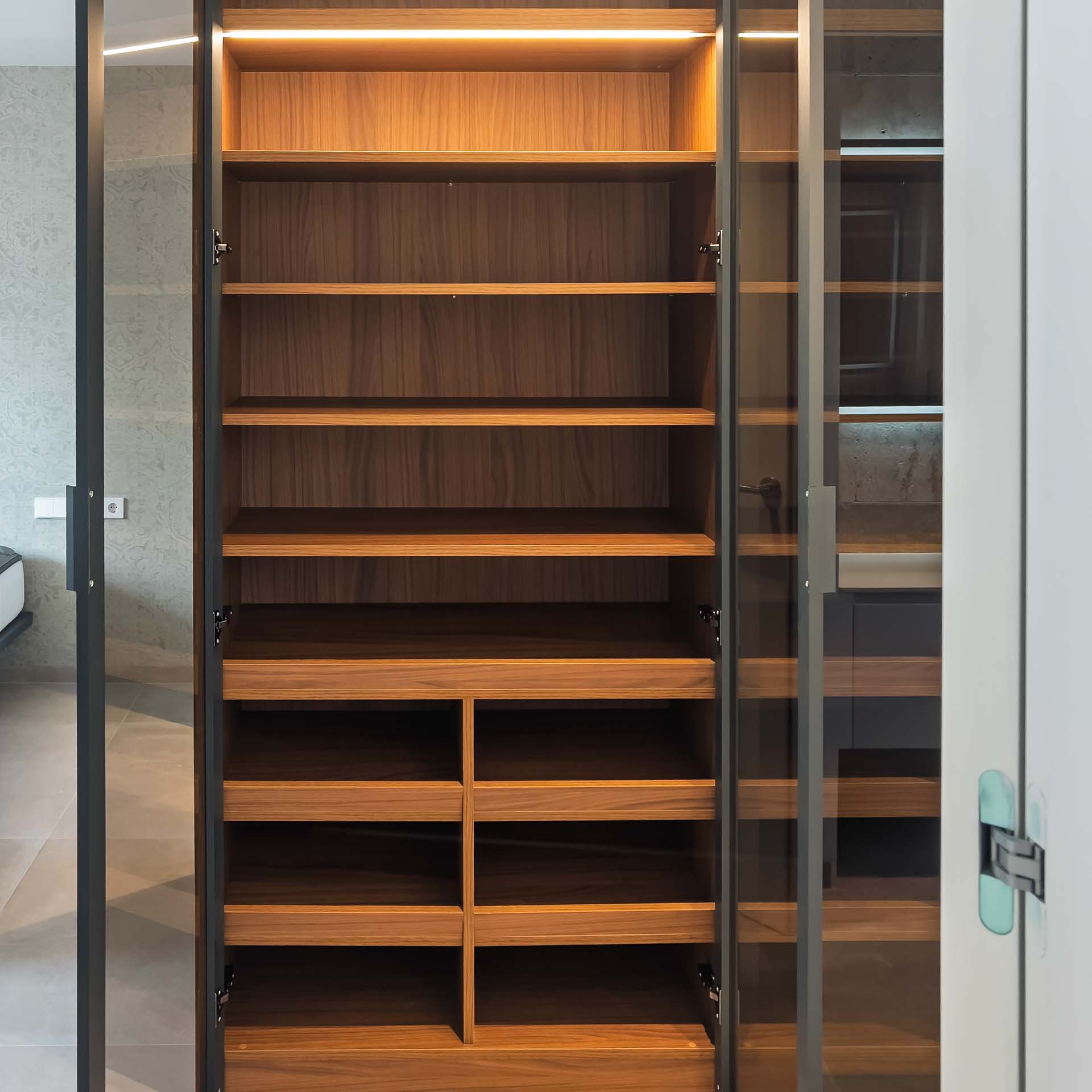 El resultado son armarios y vestidores modernos o clásicos, con interiores perfectamente organizados gracias a soluciones innovadoras de almacenaje, iluminación LED integrada y sistemas de apertura fluidos.