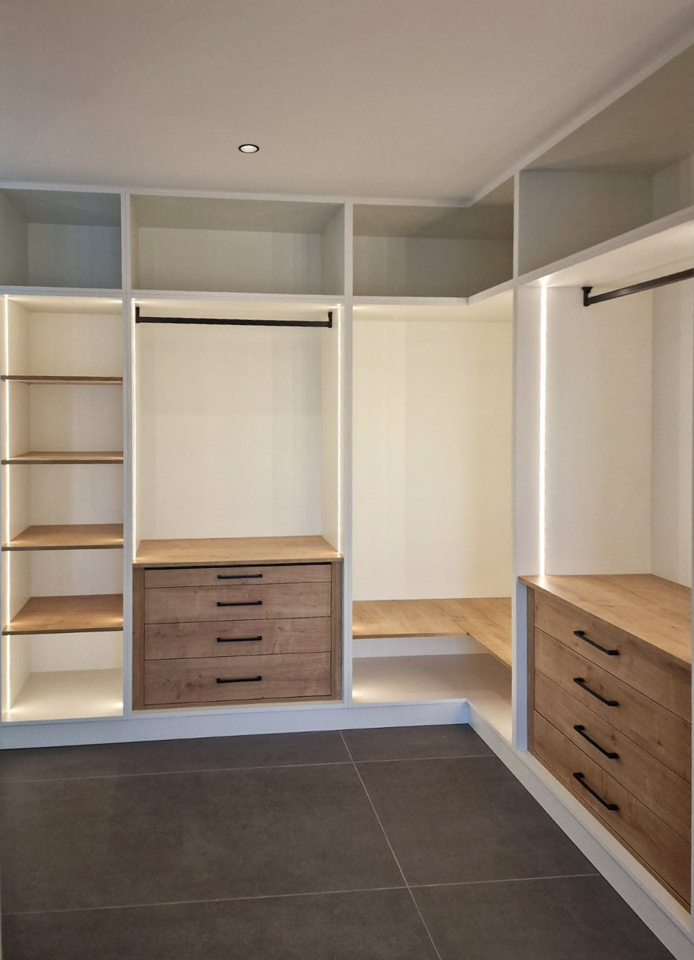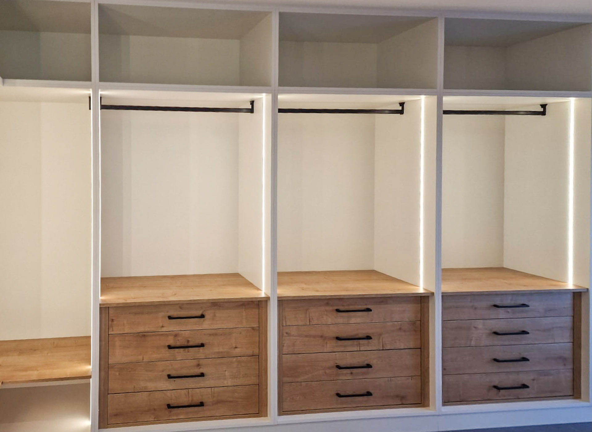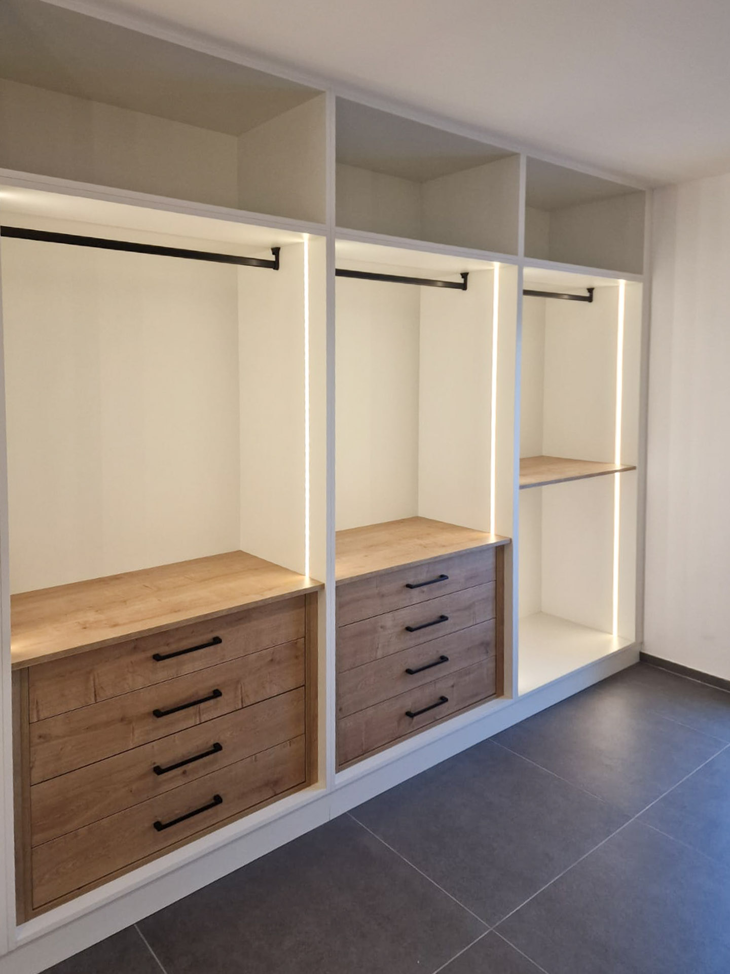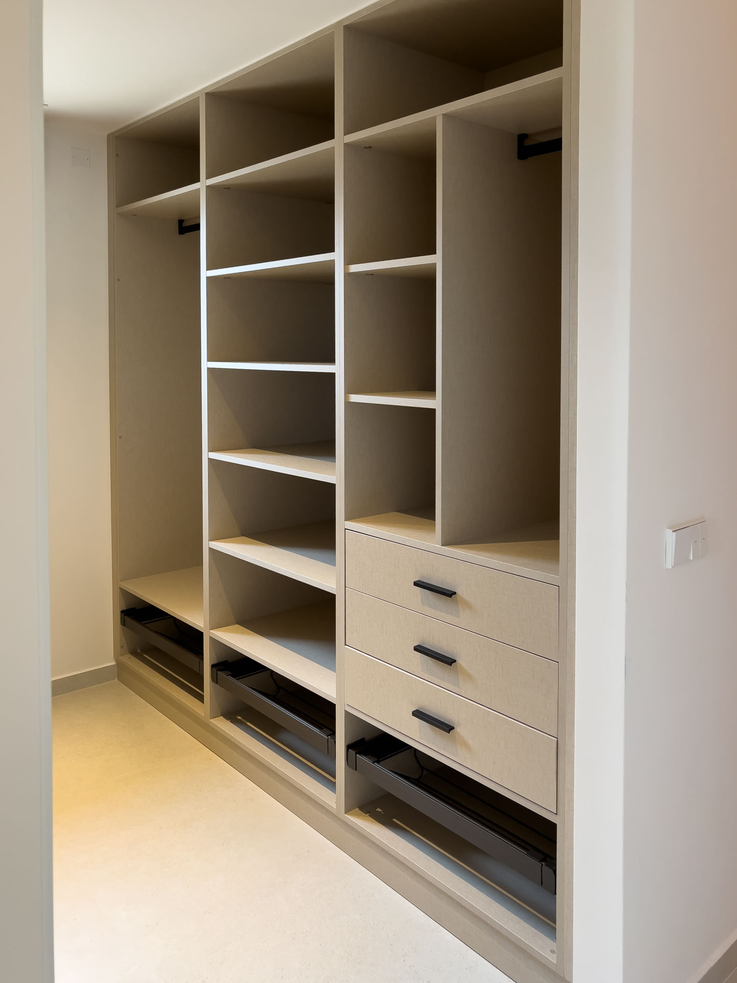 Desde vestidores de ensueño con acabados de lujo hasta armarios empotrados que aprovechan cada centímetro, creamos piezas únicas que reflejan tu estilo y se integran perfectamente en la arquitectura de tu vivienda.
