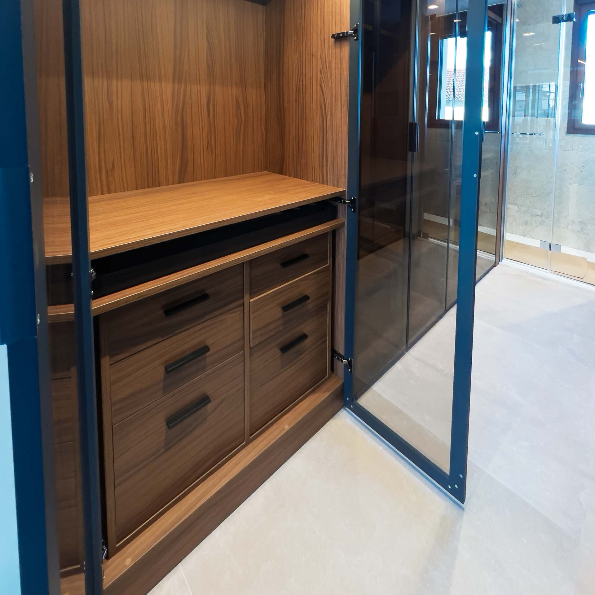 Cada vestidor está equipado con soluciones personalizadas, desde altillos y barras hasta bandejas extraíbles y zapateros, garantizando que cada prenda y accesorio tenga su lugar perfecto.